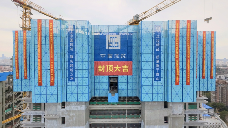 由中建二局上海分公司承建的静安灵石社区N070402单元094a-14地块住办项目8栋住宅楼日前实现结构封顶。